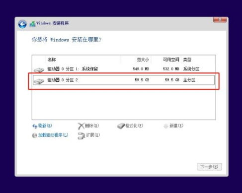 8.選擇操作系統安裝位置,就是選定C區,最好將C盤大小設置在100G以上