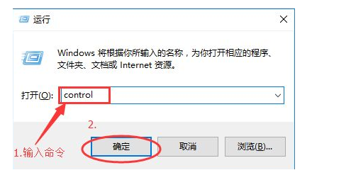 4.接著在窗口輸入欄輸入“control”(控制面板)命令,點擊確定,即可快速打開控制面板。