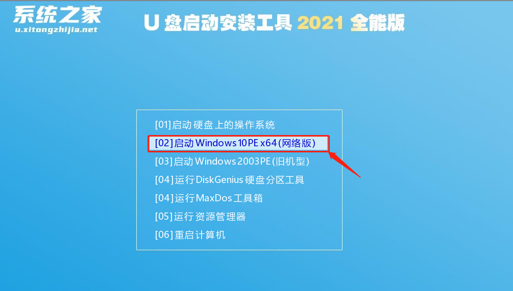 2、進入選擇界面,咱們選擇[02]啟動Windows10PE網絡版,這樣就可以進入一個很像Win10桌面的PE系統。