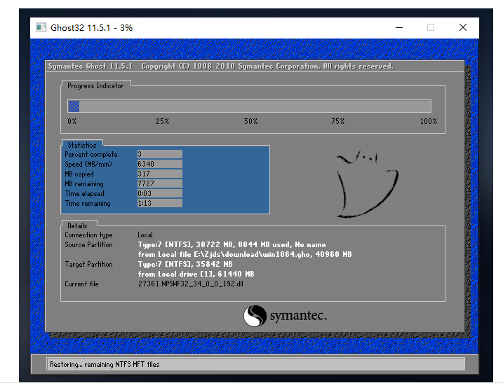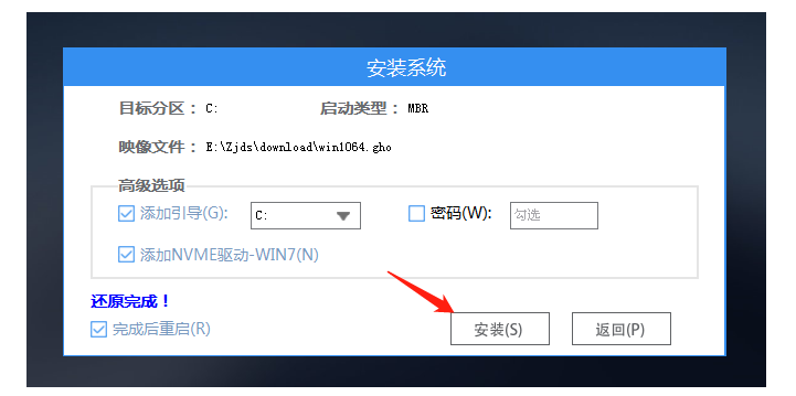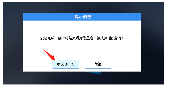 7、備份還原完成后,拔掉U盤重啟電腦,系統就會自動進入系統安裝界面。