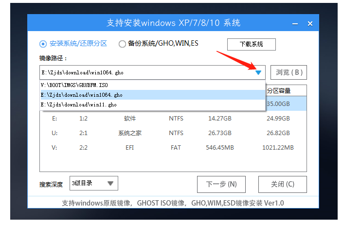 3、然后點擊一鍵重裝系統,點擊瀏覽,選擇U盤中想要安裝的系統。