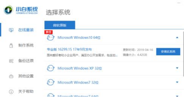 2、打開小白一鍵重裝系統選擇心儀的win10系統下載。