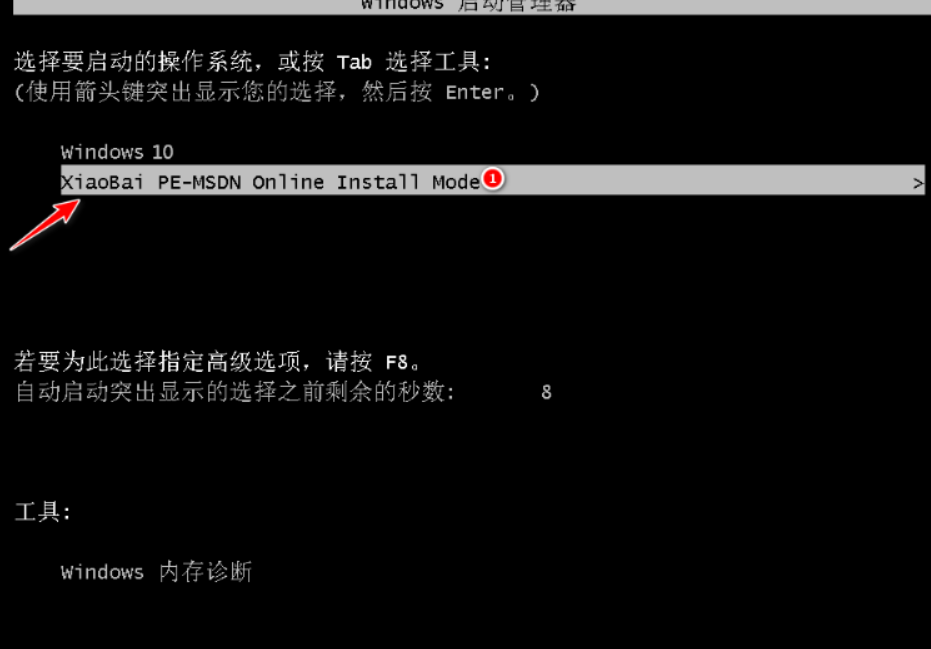 5、重啟系統后,選擇xiaobai-pe系統進入。