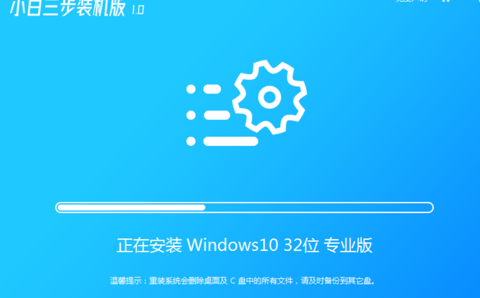 1、下載小白三步裝機版工具打開,選擇需要安裝的win10系統點擊立即重裝。