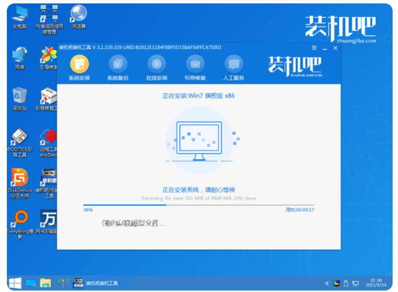 5、在pe系統桌面上,找到裝機吧裝機工具打開后就可以直接選擇要安裝的系統點擊安裝到c盤。