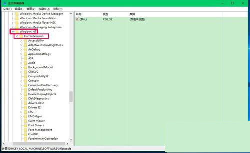 3、在Microsoft的展開項中再依次展開:Windows NT\CurrentVersion;