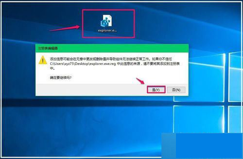添加信息可能會在無意中更改或刪除值并導致組件無法繼續正常工作。如果你不信任 C:\Users\xyz75\Desktop\explorer.exe.reg 中此信息的來源,請不要將其添加到注冊表中。