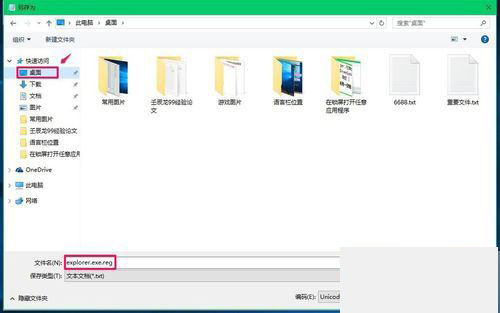 9、在另存為窗口,我們點擊【桌面】,在文件名(N)欄中輸入explorer.exe.reg,再點擊:保存;