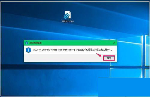 C:\Users\xyz75\Desktop\explorer.exe.reg 中包含的項和值已成功添加到注冊表中,點擊:確定;