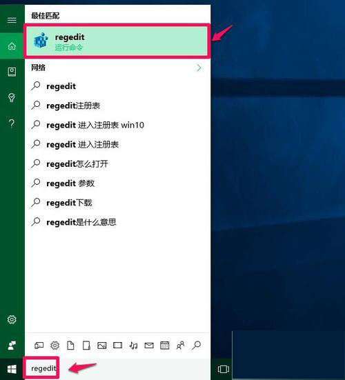 1、在桌面左下角的搜索欄中輸入regedit命令,點擊【regedit運行命令】,打開系統注冊表編輯器;
