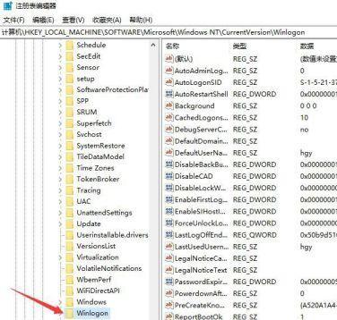 5、在注冊表編輯器窗口中找到計算機->HKEY_LOCAL_MACHINE->SOFTWARE->Microsoft->Windows NT->CurrentVersion->Winlogon。