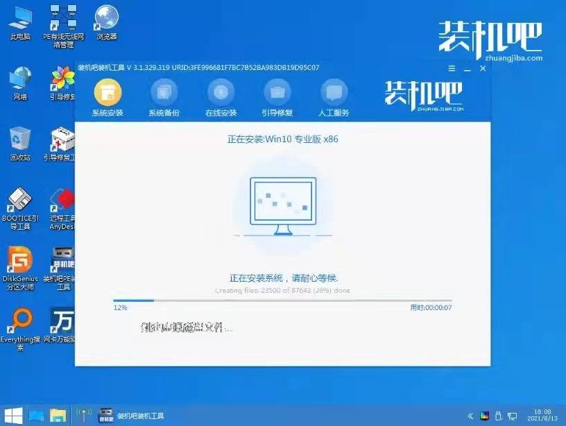 5、接著在pe系統桌面打開裝機吧裝機工具,選擇需要安裝的win10系統點擊安裝到電腦c盤上。