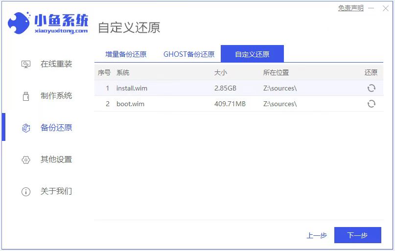 2、然后選擇“自定義還原”,選擇需要安裝的官方win10系統鏡像,點擊下一步。