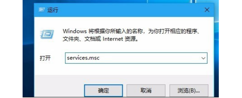 3、接著在打開的Windows10運行窗口中,輸入命令“services.msc”,然后點擊確定按鈕運行該程序。