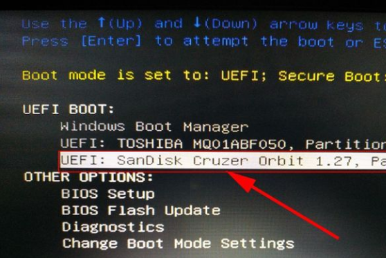 10.我的電腦為戴爾筆記本,開機時按F12,出現下圖所示時,按上下鍵選擇U盤后回車,我的U盤品牌為閃迪,很明顯就能看到下面紅框標記里有「SanDisk」字樣。(各品牌電腦出現的界面略有不同,但大同小異。)