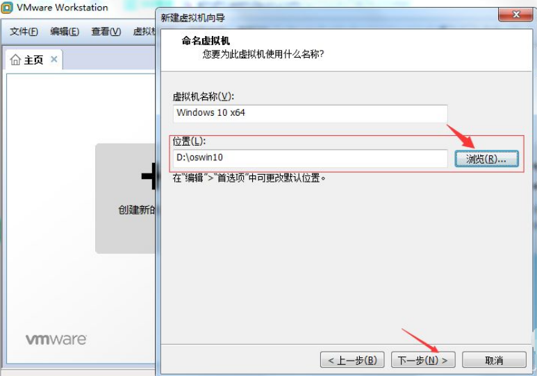 5、然后繼續點擊瀏覽,新建一個文件夾將虛擬系統(win10)保存在新建文件夾中。