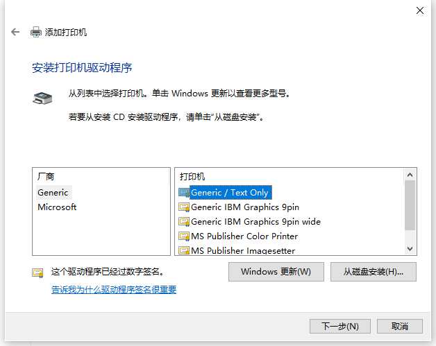 7、選擇打印機廠商及相應的型號,若沒有可使用打印機附帶的磁盤來安裝。