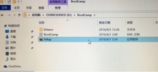 5、安裝完成進入windows系統后,打開D盤,在 BootCamp 目錄下,雙擊打開 Setup 安裝程序,為 Windows10 安裝 Mac 電腦的硬件驅動。