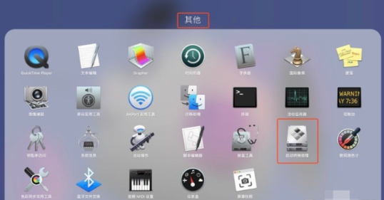 2、打開蘋果筆記本的啟動欄,找到在其他下點擊啟動轉換器打開,點擊繼續。