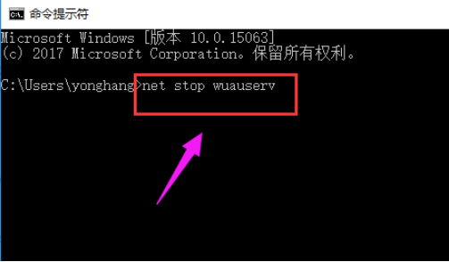 1、鍵盤上按“Windows X”,打開命令提示符管理員,輸入“net stop wuauserv”命令。