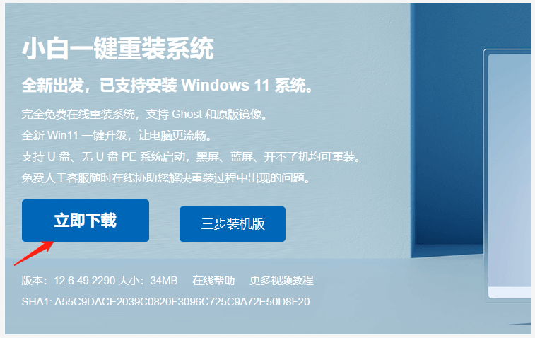 1、在官網上下載小白一鍵重裝軟件。