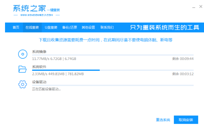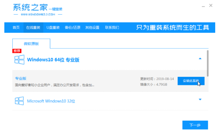 1、在官網上下載并打開系統之家軟件,進入“在線重新安裝系統”界面。