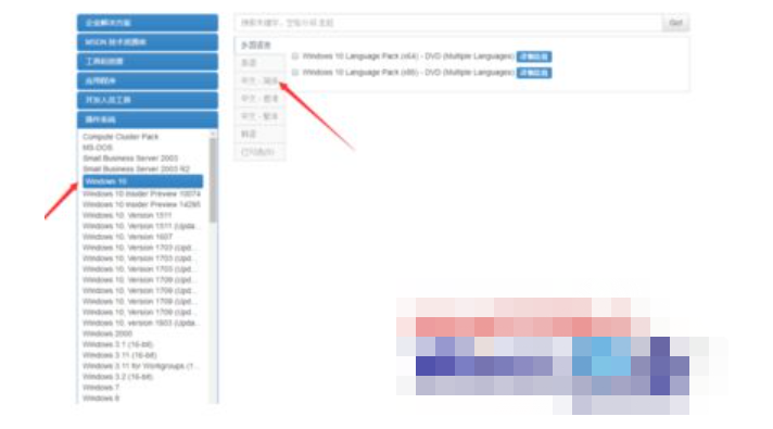 4、我選擇想要的win10版本號,點擊查看,然后在左側的語言選項中選擇中文 簡體,如下?! ?/p>