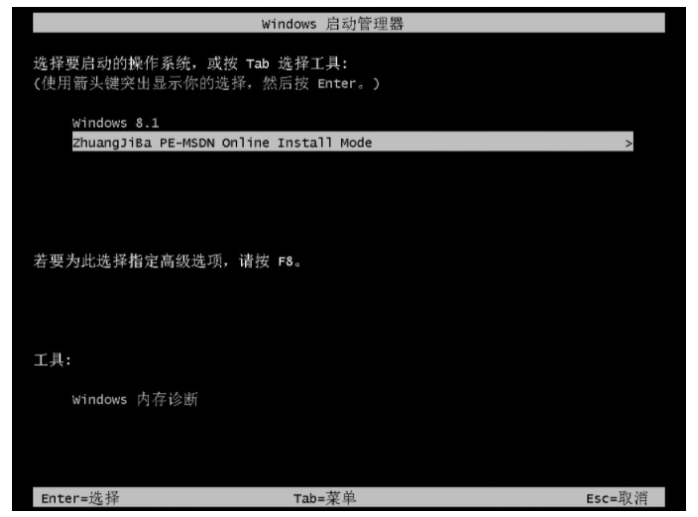 4、進入windows啟動管理器界面,選擇第二個進入電腦的pe系統。