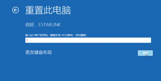 4、重啟后,選擇對于的電腦賬號重置此電腦。