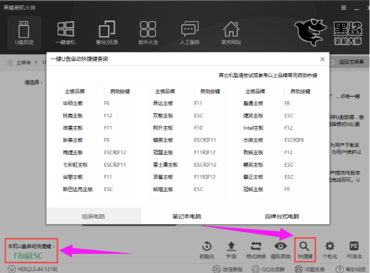 4、U盤啟動盤制作成功后,重啟電腦,并猛按U盤啟動快捷鍵,進入到PE系統中。