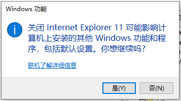 4、在Windows功能窗口找到“Internet Explorer11”菜單項,取消前面的勾選。
