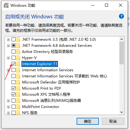 6、這樣就將原來的Windows10系統IE11瀏覽器卸載了,同時提示重新啟動電腦。再次重啟電腦后,重復上述操作,選中Internet Explorer11前面的復選框點擊確定 ,這樣電腦就重新安裝新的IE11瀏覽器。如果還是不能解決ie瀏覽器的問題的話,建議直接網上搜索ie瀏覽器安裝包,下載安裝到電腦上即可。