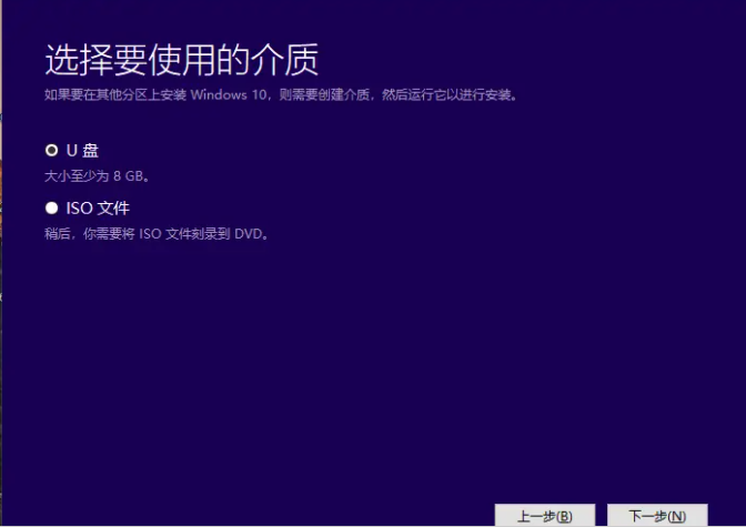 5、選擇安裝的介質為U盤,點擊下一步。