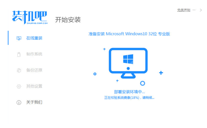 1、下載安裝裝機吧在線系統重裝工具軟件打開運行,選擇制作系統,點擊開始制作。