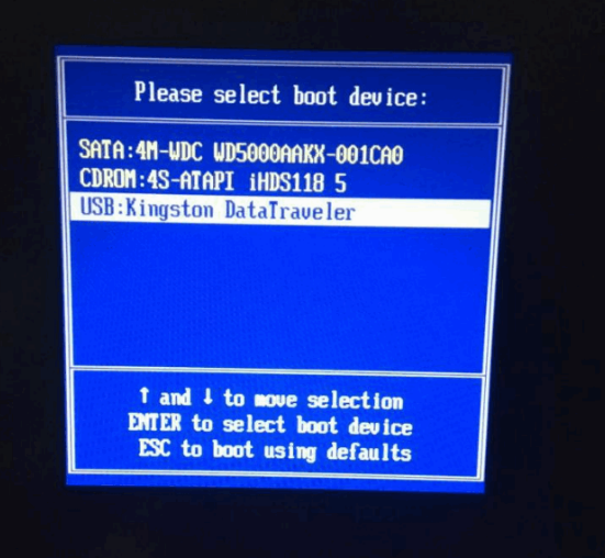 4、進入到開機啟動的界面時,快速按啟動熱鍵,在出現的界面中選擇帶有USB的選項。