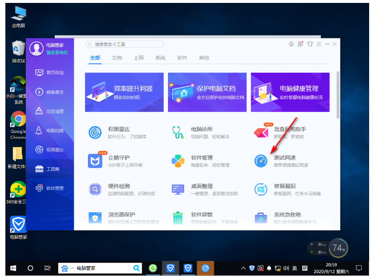 1、首先打開電腦管家,進入該界面后點擊工具箱。