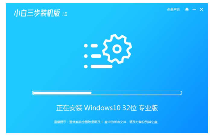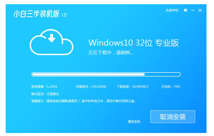 1、下載并運行小白三步裝機軟件,退出電腦的安全軟件,擊立即重裝。
