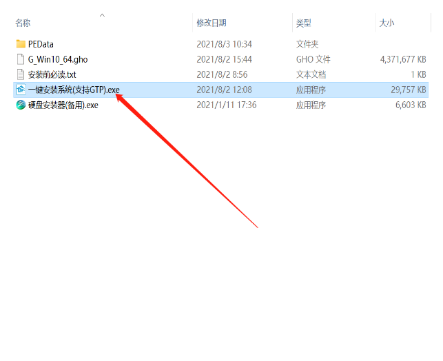 4、然后打開解壓文件夾中的【一鍵安裝系統(GTP).exe】;