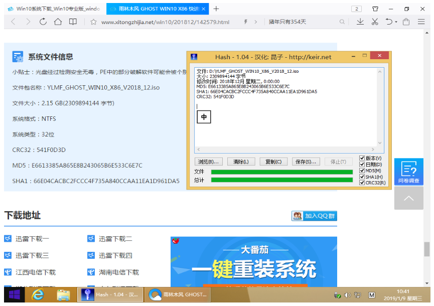 3、下載文件校驗工具: https://www.xitongzhijia.net/soft/29239.html
