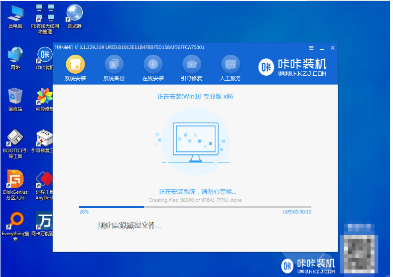 5、在pe系統中繼續進行win10專業版的安裝即可。