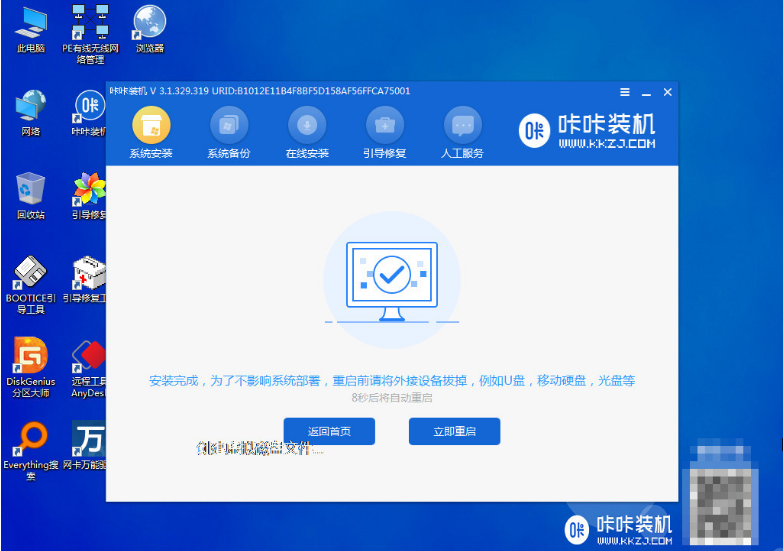 3、系統下載完成之后環境部署完畢重啟電腦即可。