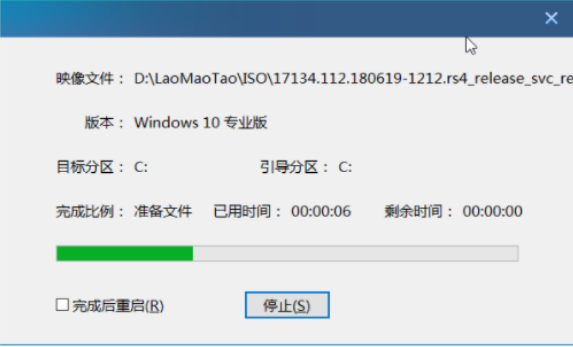 5、 耐心等待win10系統安裝完成重啟電腦,此時要拔出U盤,避免重啟時再次進入PE頁面。