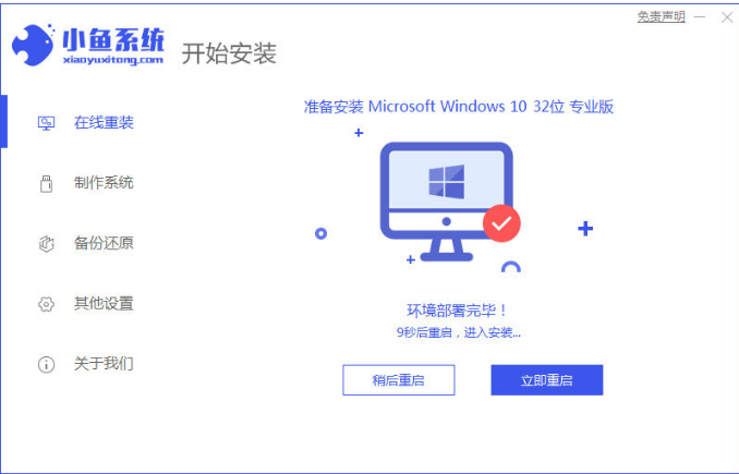 步驟四:我們等待系統環境部署完畢之后,點擊立即重啟電腦即可。