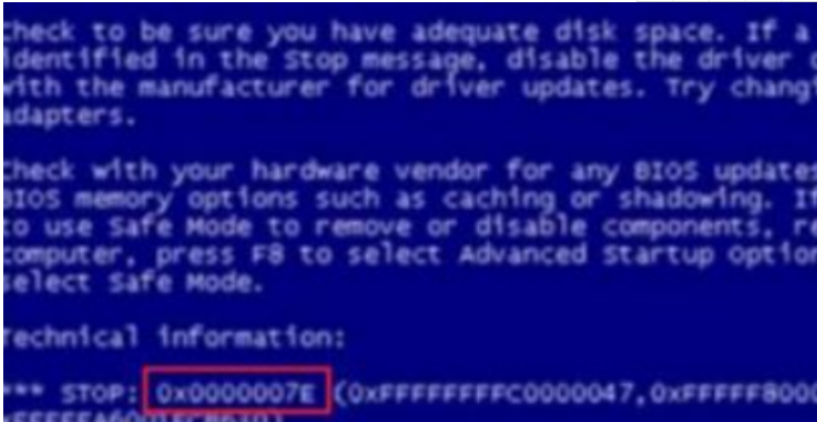2、藍屏代碼2:0X0000007E、0X0000008E