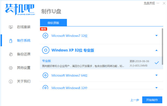 2、選擇我們需要安裝的系統,點擊開始制作。
