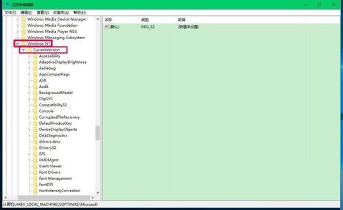 3、在Microsoft的展開項中再依次展開:Windows NT\CurrentVersion;