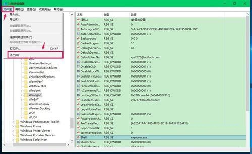 6、點擊注冊表編輯器左上角的【文件】,在下拉菜單中點擊【退出】,退出注冊表編輯器。