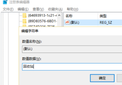 5、選擇該新建項,將“默認”修改其數值數據為“回收站”。