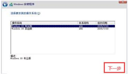 9、選擇需要的win10系統版本后點擊“下一步”。