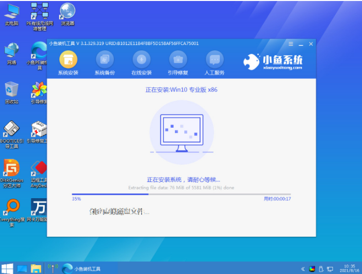 4、插入啟動盤到電腦中,開機不停按啟動熱鍵進啟動頁面,選擇u盤啟動項按回車進入pe系統。在pe系統桌面上打開小魚裝機工具,選擇win10系統點擊安裝即可。